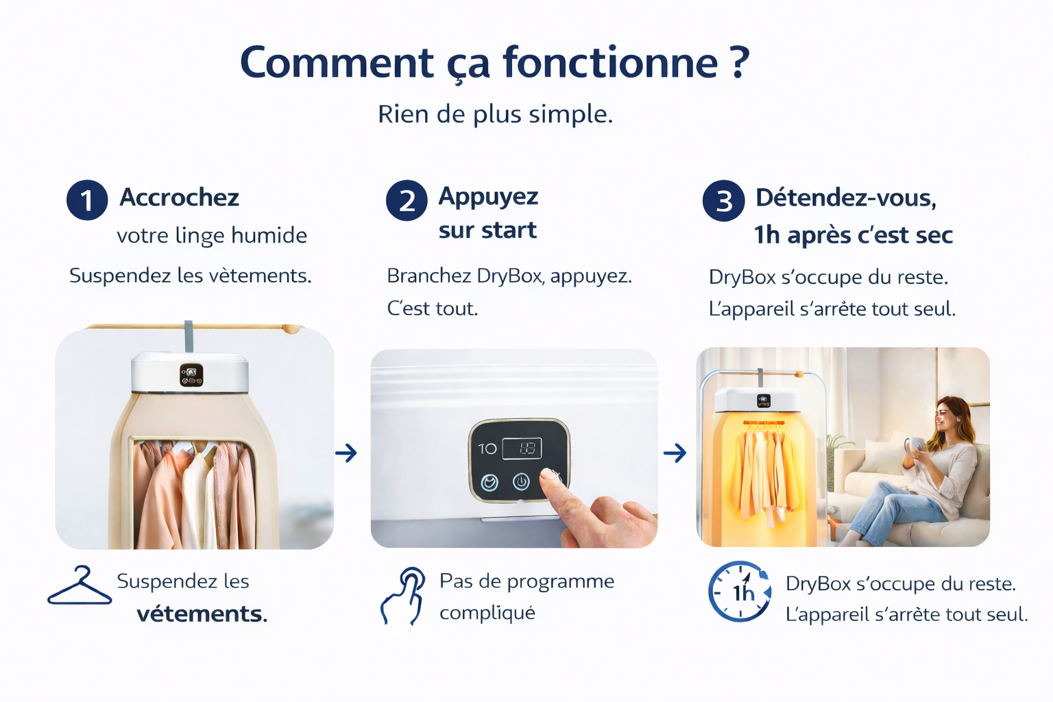 Avec une grande famille, aller à la buanderie était devenu compliqué. Il sèche jusqu’à 9 vêtements en 1 heure.
